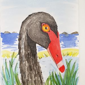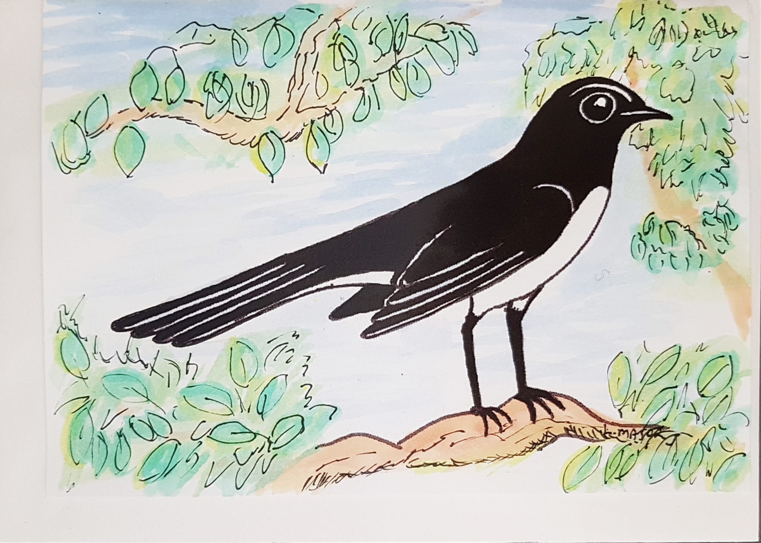 Hand painted card – Willy Wagtail – a small cheeky and cheerful bird found all over Australia.